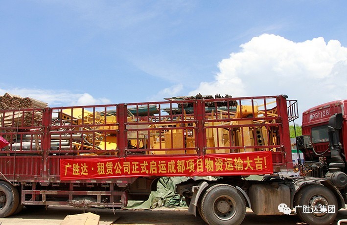 6月6日,一連幾日的陰雨天氣終于放晴。天藍(lán)云白,一碧千里。在這個(gè)吉祥的日子里,廣勝達(dá)集團(tuán)租賃公司正式啟動(dòng)了成都項(xiàng)目的物資運(yùn)輸。