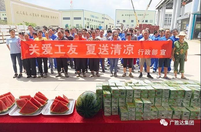 進入7月份以來,全省各地岀現持續(xù)高溫天氣,為確保奮戰(zhàn)在一線工人的身體健康,同時更好地落實公司“以人為本”的管理理念和人文關懷,7月22日-31日,廣勝達建設公司、勝德科技公司聯合開展了“關愛工友 夏送清涼”活動。行政工作人員在公司各項目部及樟木頭建筑工業(yè)園等地,為不畏高溫酷暑依然工作在生產一線的工人們送去了夏日的清涼和濃濃的關愛。