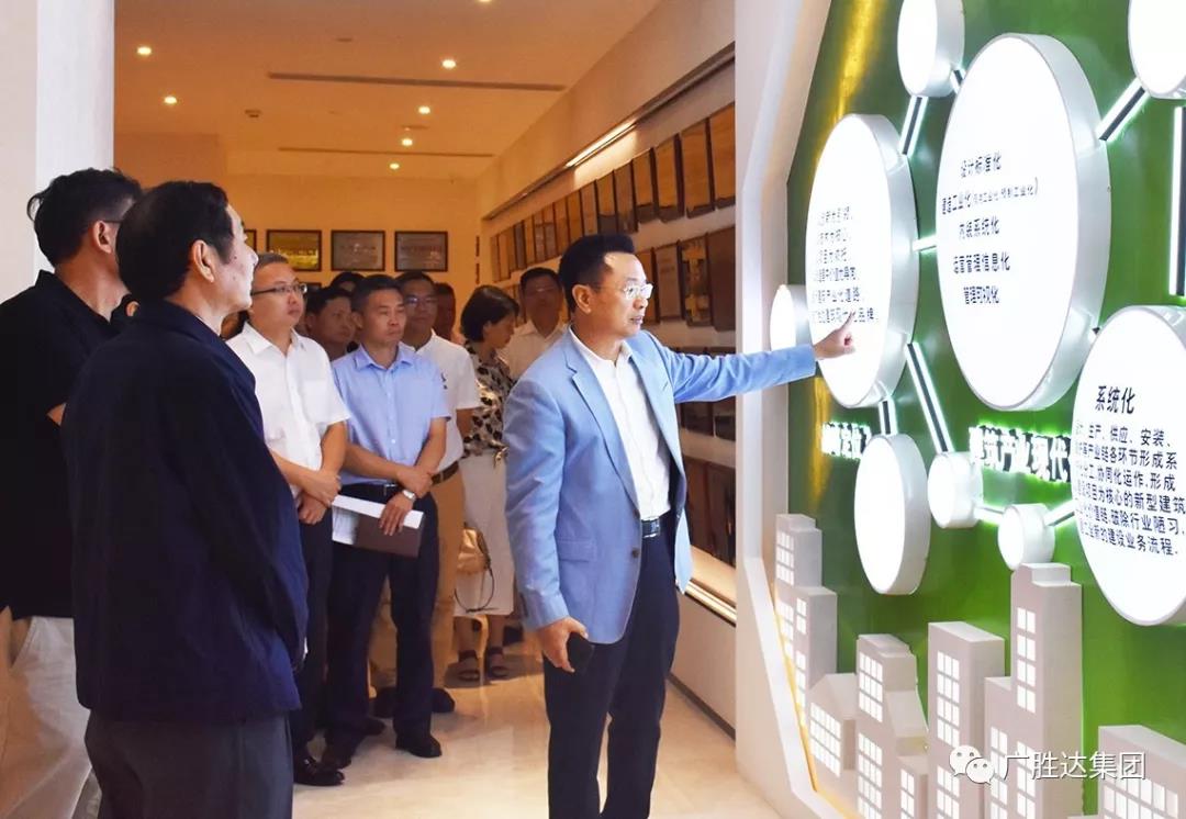 黃中偉主席一行參觀了廣勝達(dá)集團(tuán)的企業(yè)文化長廊,了解了企業(yè)的發(fā)展歷程、管理理念、信息化建設(shè)、裝配式建筑等,在多媒體大廳觀看了廣勝達(dá)集團(tuán)新農(nóng)村建設(shè)——楊赤里村的宣傳片和司歌《筑夢天下》MV。